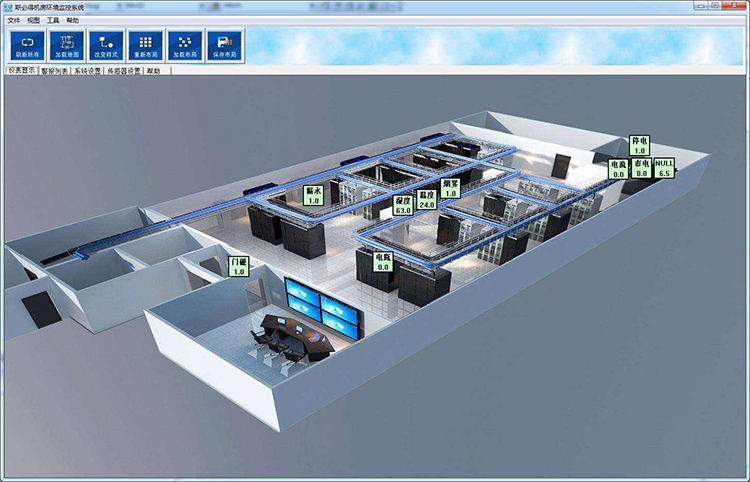机房监控系统常用2D显示平面环境界面,视觉效果一般,不能360°可视化查看,参数按钮不能直观可视,只有点击出现环镜界面参数图。 斯必得公司提供3