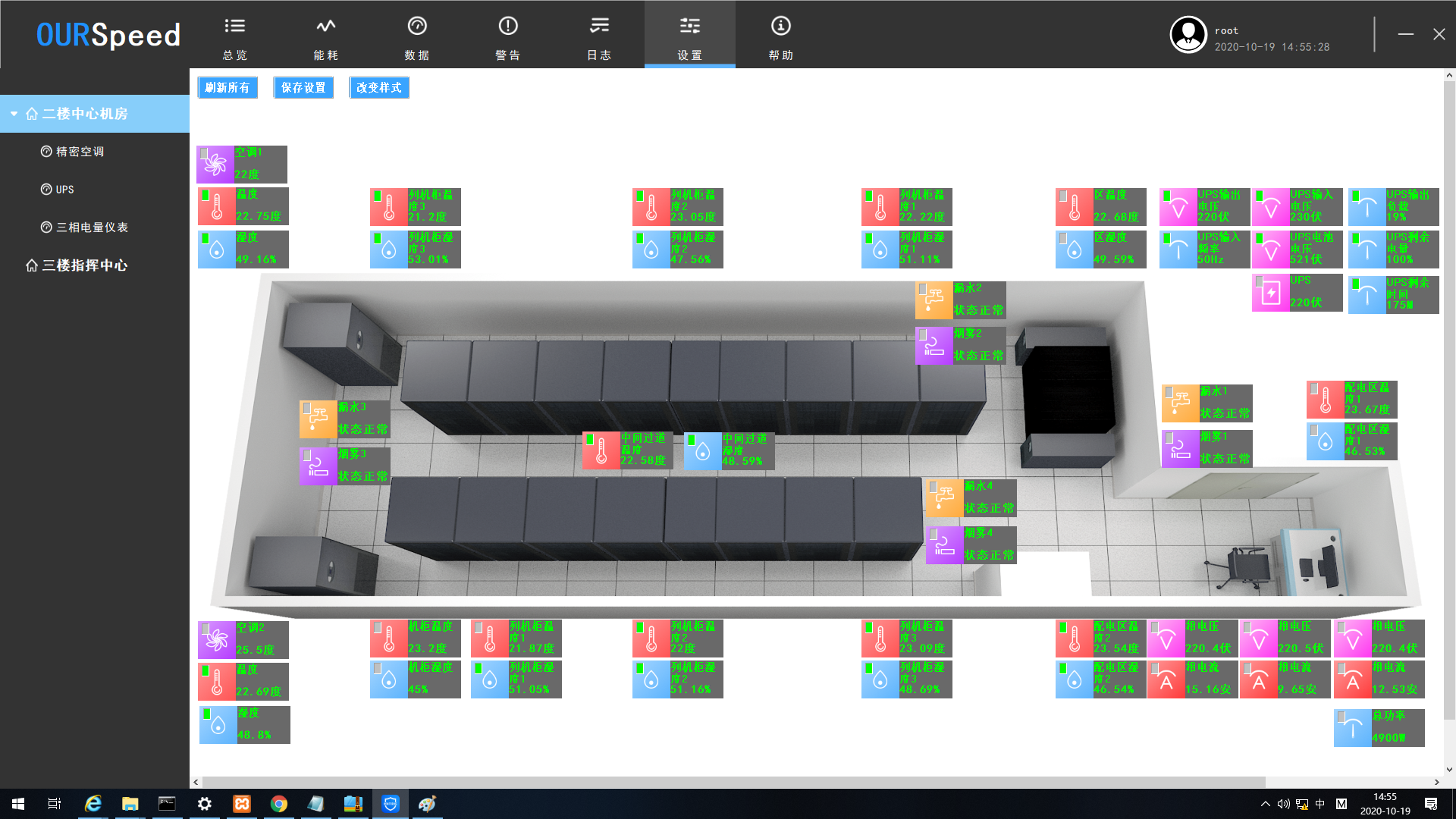 动力环境监控系统的多屏幕展示功能可以将用户关注的某些设备的重要信息页面进行独立展示,支持在单个屏幕上显示多个页面展示窗口或者在多个屏幕上